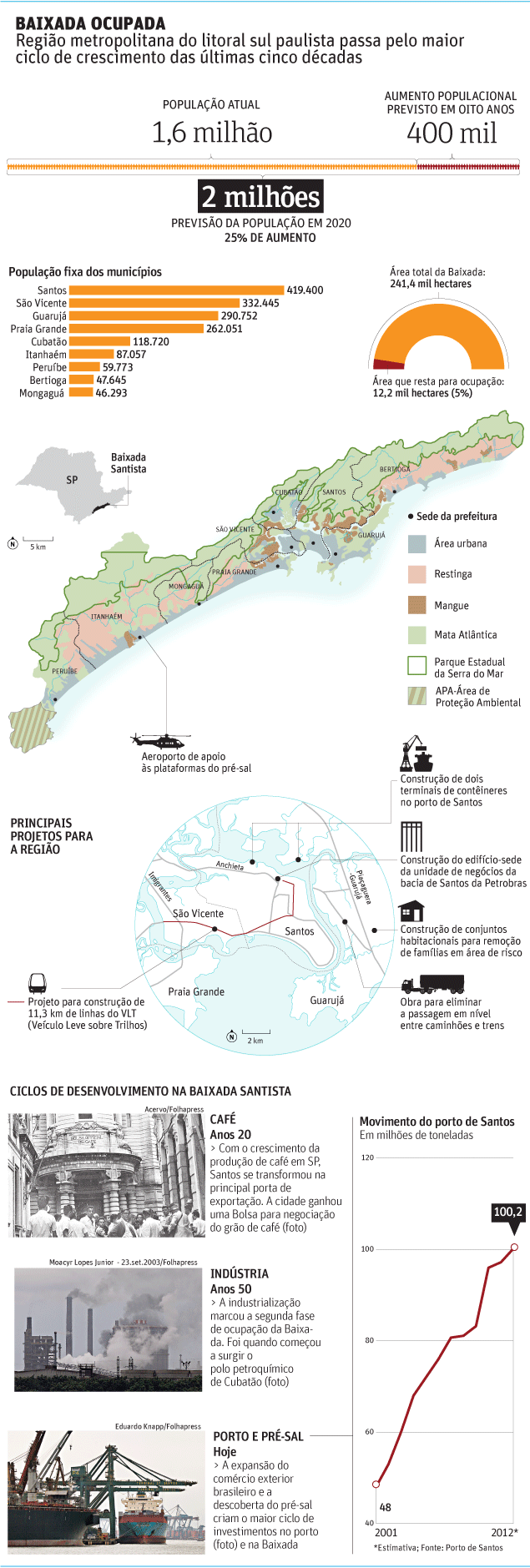 A maior expansão econômica da Baixada Santista em 50 anos vai atrair 400 mil pessoas para a região até 2020. Isso equivale ao surgimento de uma nova cidade de Santos num prazo de oito anos.
